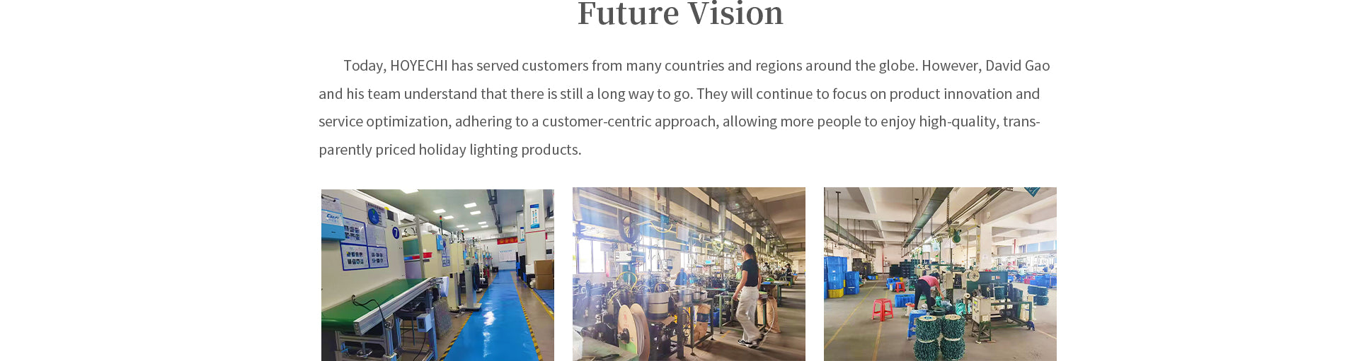 This challenge sparked a new idea—one that would later define HOYECHI’s mission. David envisioned a brand that not only produced professional-grade festive lighting but also made it accessible, beautiful, and emotionally meaningful. A brand that could bring commercial-quality craftsmanship into everyday homes, enabling more families around the world to enjoy the magic of holidays without barriers.