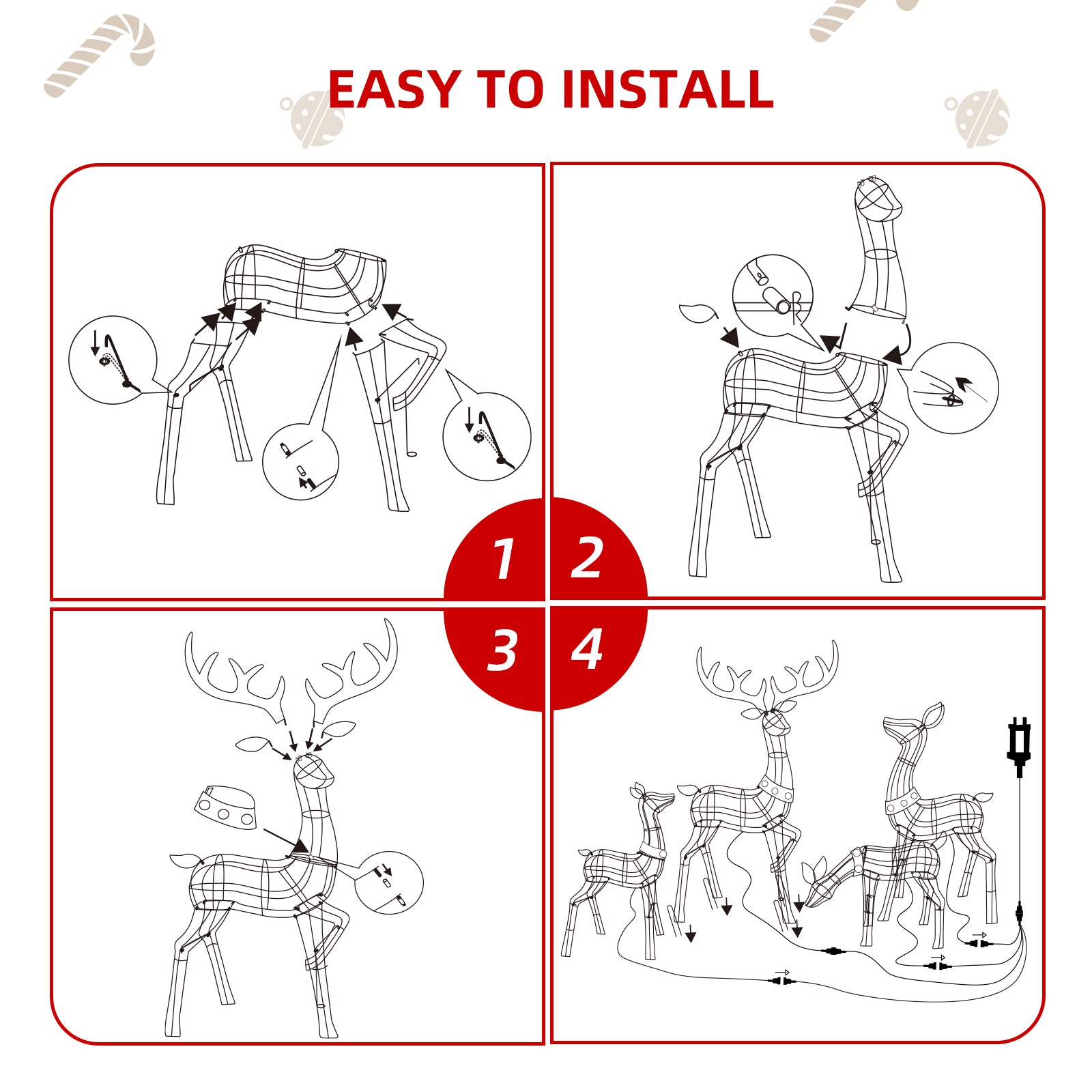 - 245 Pure White LED Lights - This lighted Christmas deer set includes 245 bright, energy-saving white LED lights (Buck: 105; Doe: 70; Fawns: 35 each), delivering a clean, icy glow perfect for creating a winter wonderland look across your lawn, front yard, garden, or porch.
