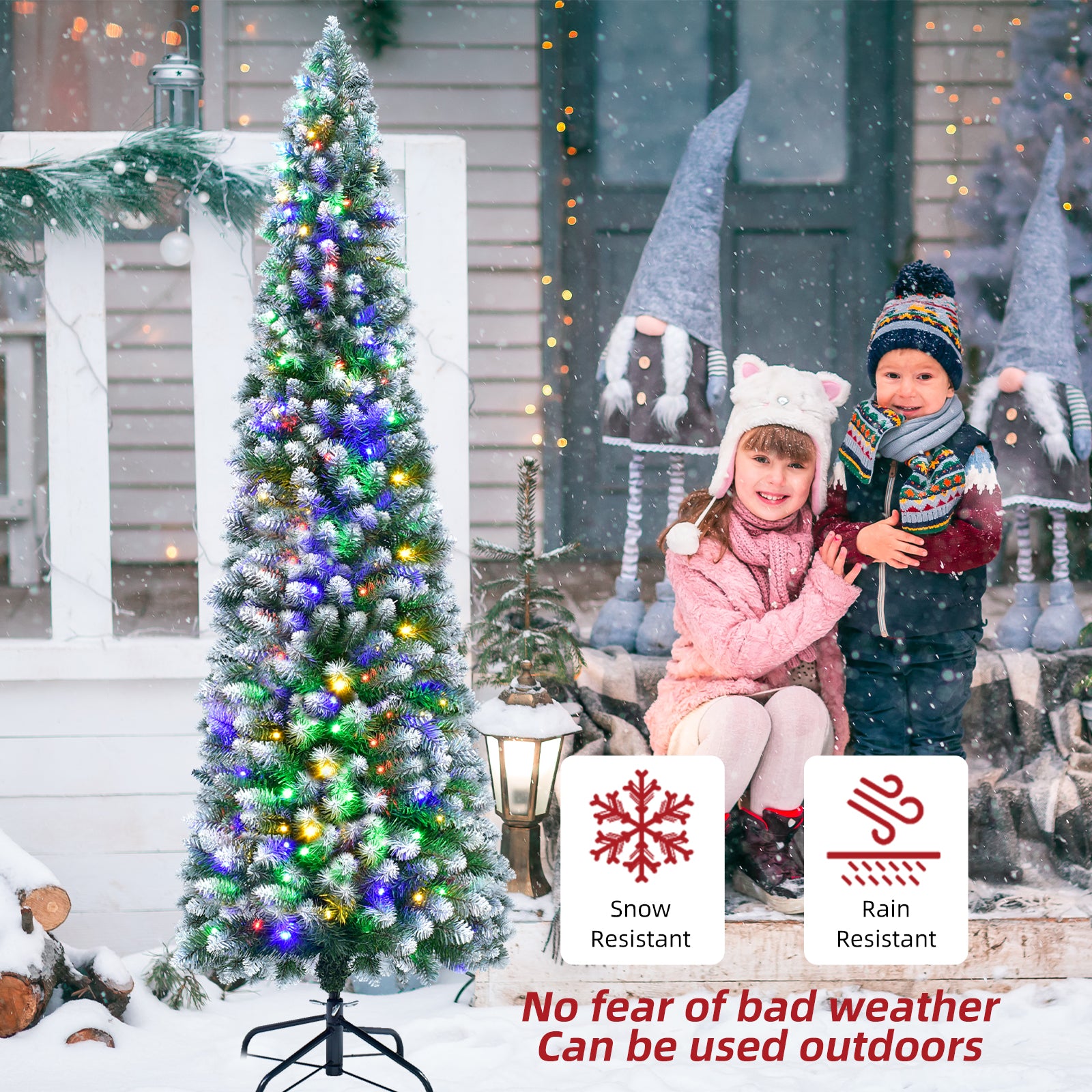 Slim Pencil Christmas Tree 7.5FT - HOYECHI Artificial Christmas Tree with 320 Multicolored Lights, Skinny Christmas Tree with 9 Light Modes - Narrow Christmas Tree for Home and Party